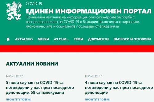 Информация за регистрираните в страната случаи на COVID-19 вече ще се публикува веднъж седмично. Тя ще е налична в справките за епидемичната обстановка на Министерството на здравеопазването и Националния център по заразни и паразитни болести.