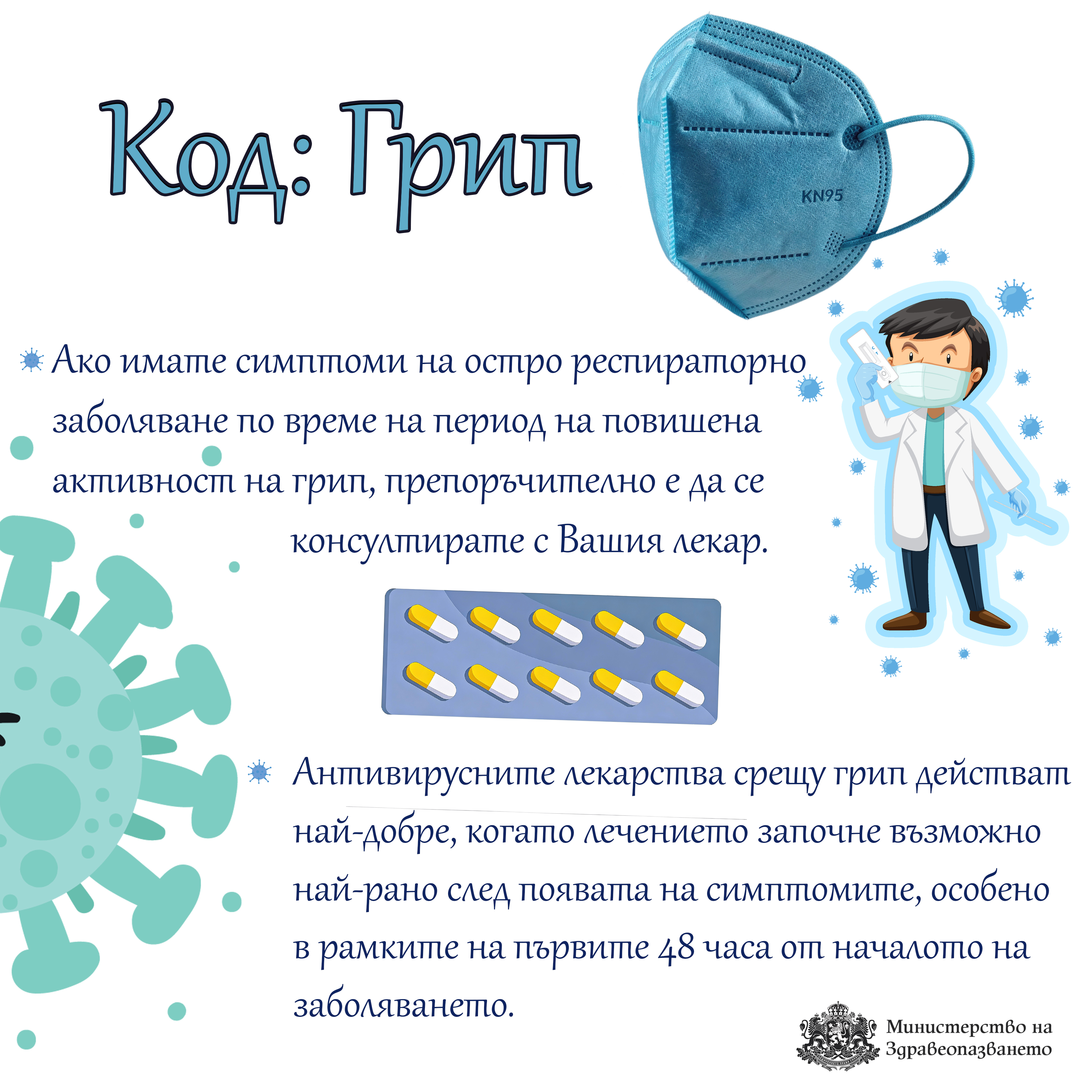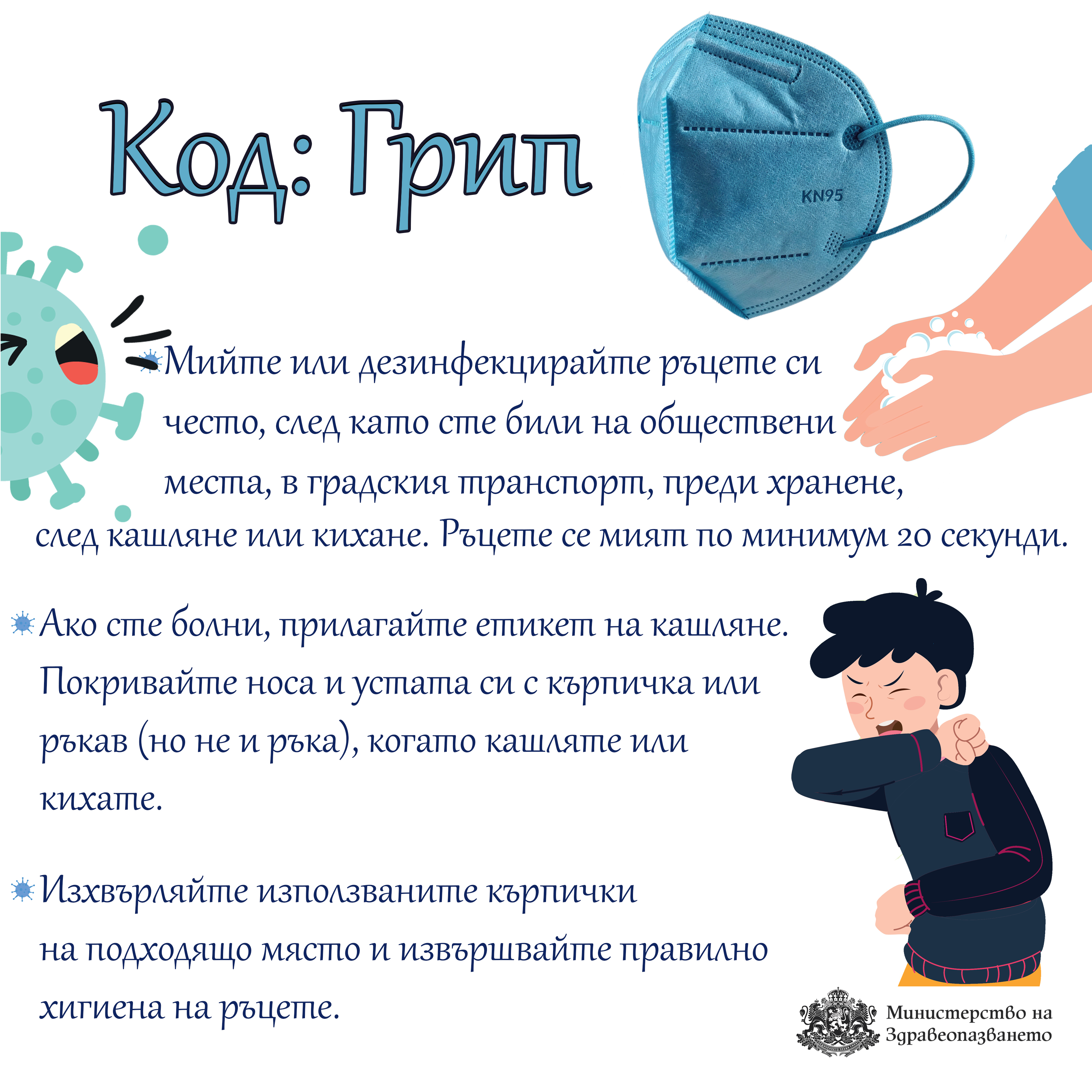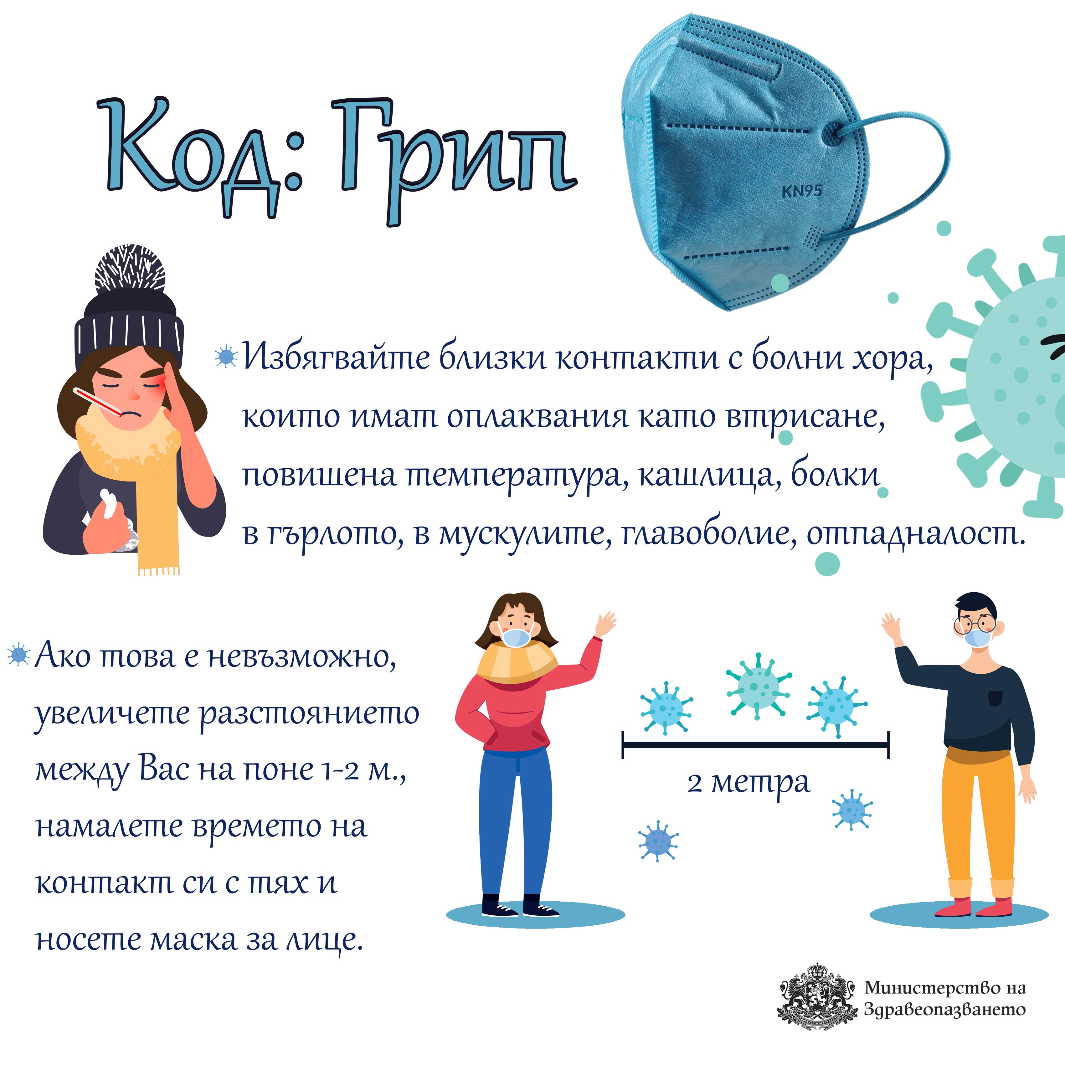 Във връзка с интензивното разпространение на грип и остри респираторни заболявания в страната, Министерството на здравеопазването напомня на гражданите основните препоръки за предпазване и намаляване на риска от заразяване през настоящите празници.