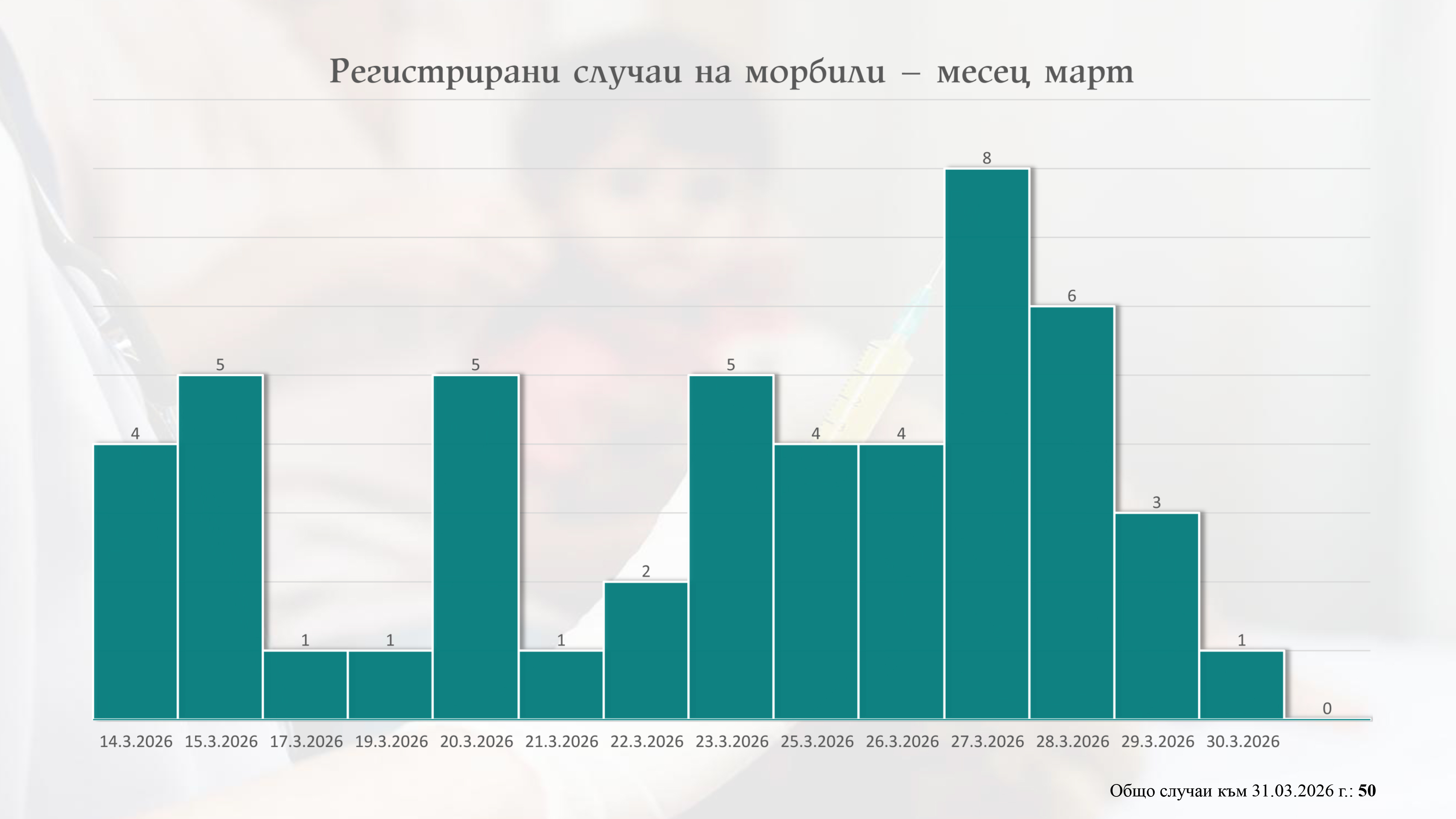 Нови 7 случая на морбили са регистрирани в страната. С тях общият им брой към 31 март става 50.