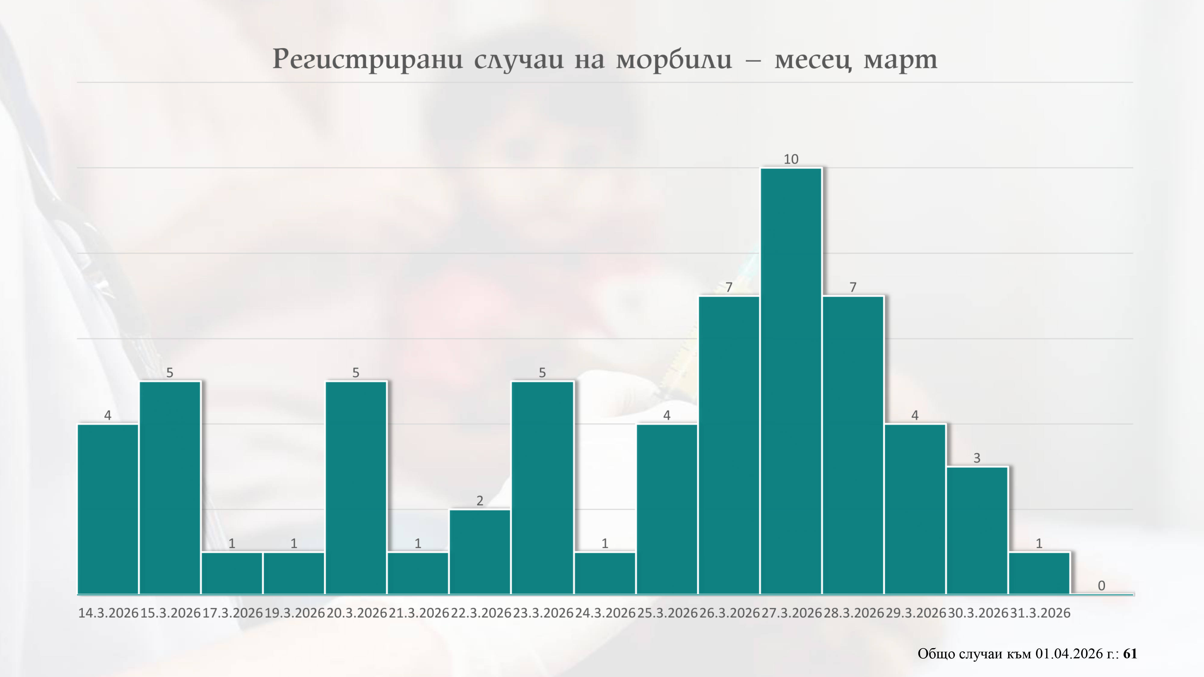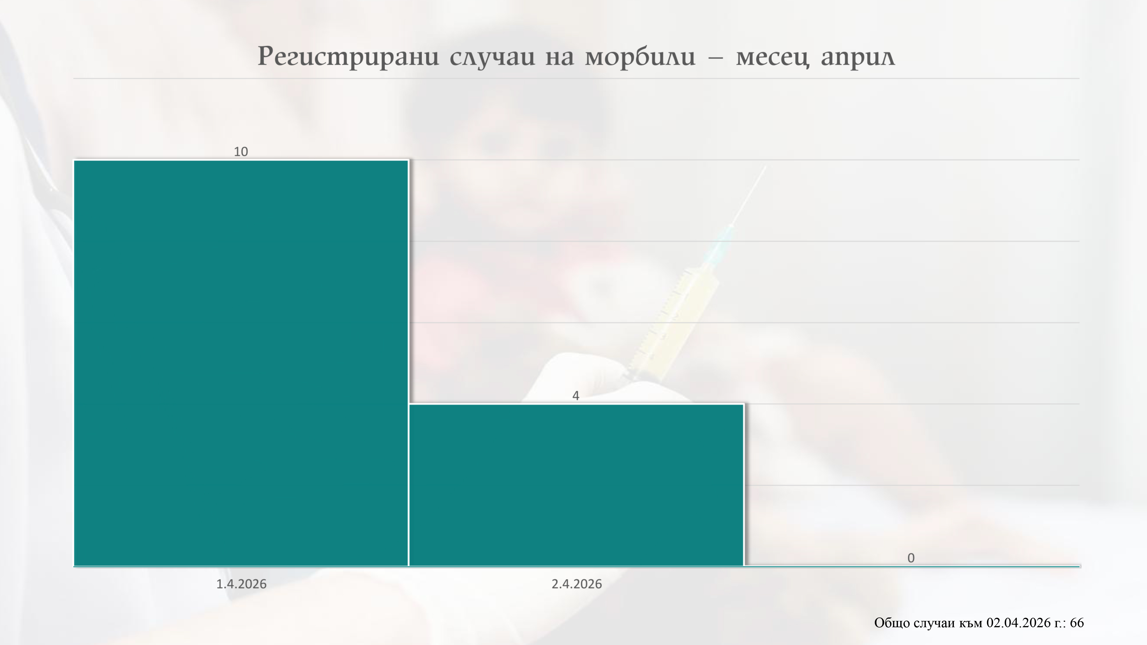 02 април 202614 случая на морбили са регистрирани в първите два дни на април.
