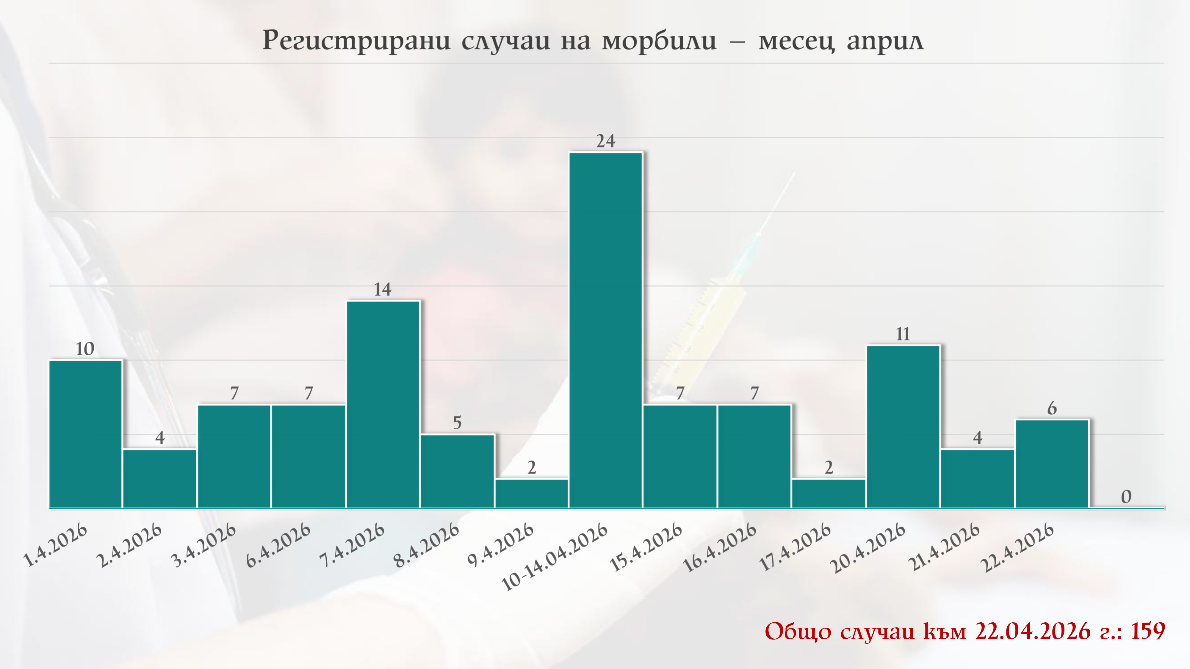 14 случая на морбили са регистрирани в първите два дни на април.